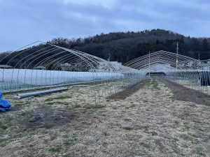 今回は皆さんのリクエストにお答えして、いちご狩り用ハウス、契約栽培、アイスクリーム加工用として50mの2連棟で高設栽培で運用していきます♪